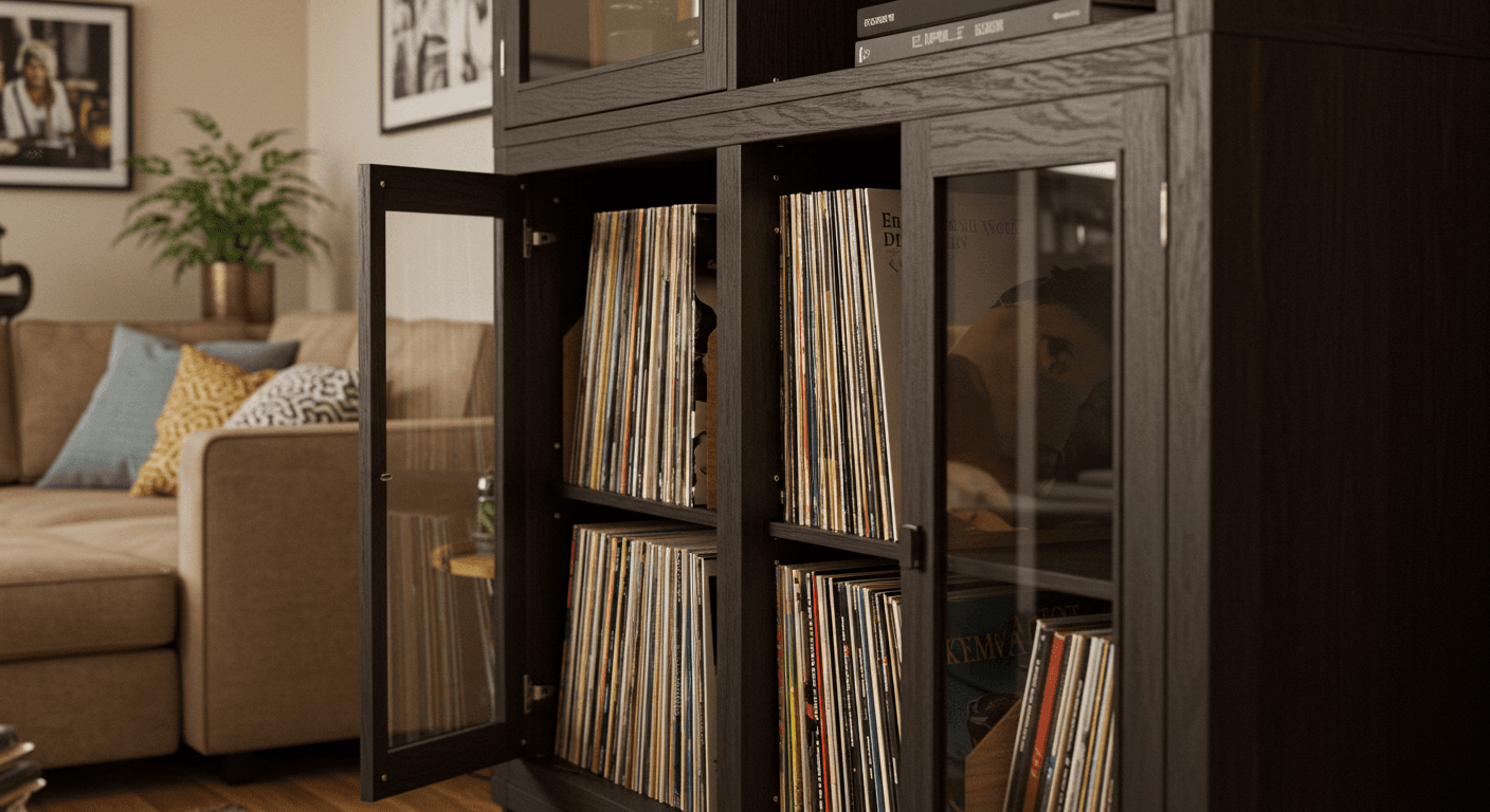 Um Verformungen bei Vinyl-Schallplatten zu vermeiden, sollten Sie diese vertikal und aufrecht in einem Schrank oder einem Regal lagern.⁴ Eine gute Aufbewahrungslösung ist entscheidend, um Ihre Sammlung zu schützen und einen einfachen Zugriff zu gewährleisten.⁵